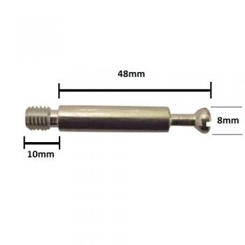 This is a 44mm capped cam bolt dowel spare part and its designed to go through 8mm holes in flat packed furniture panels.